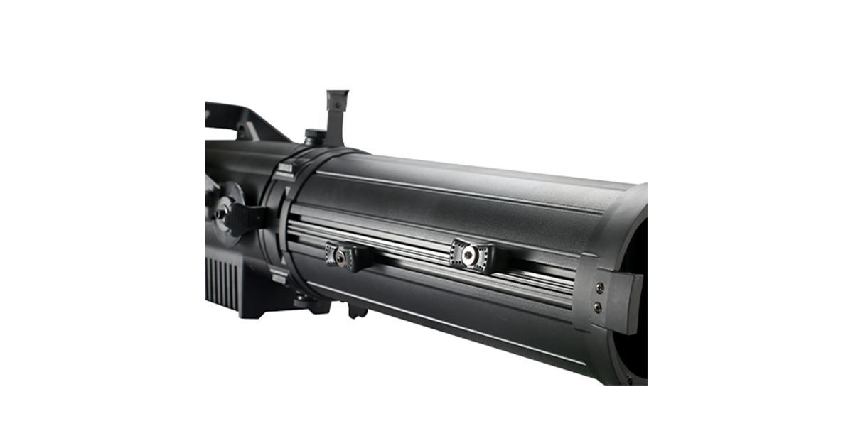 High Quality Superior Output Long through professional ellipsoidal 300W LED zoom profile light with Zoomable high quality sharp edge optical Lenses to adjust the beam from 18° to 38° suitable for special illumination effects for Auditorium stages, TV production Studios Event Stages and multipurpose venues.